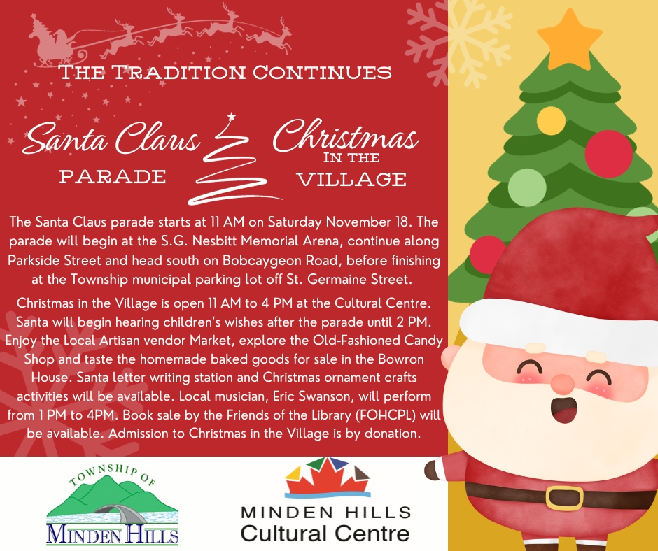 For questions regarding the Christmas in the Village, please call the Minden Hills Cultural Centre at 705-286-1260 x 546