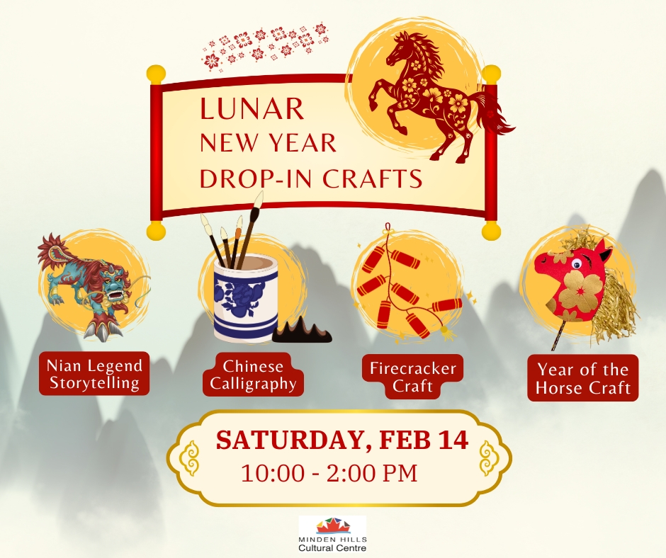 Celebrate Lunar New Year at the Minden Hills Cultural Centre with a fun, family-friendly drop-in craft event. Explore traditional Lunar New Year themes through hands-on activities, including Nian legend storytelling, Chinese calligraphy, firecracker...