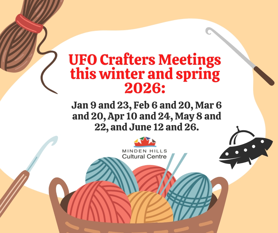 The UnFinished Objects (UFO) craft group hosts their gatherings two Fridays a month. Please feel free to join other local crafters in the Welch Room at the Minden Hills Cultural Centre to work on your neglected projects from 1:00 to 3:00 PM.